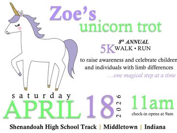 Zoe’s Unicorn Trot is a 5K Walk/Run that benefits the Lucky Fin Project and raises awareness for limb differences. Since 2019, more than 1000 participants have helped us raise over $52,000 for the Lucky Fin Project, a non-profit organization that supports individuals with limb differences. Our Unicorn Trot began with 3 kids (unicorns) with Lucky Fins (what we call their limb differences - ya know, like Nemo!) and has now grown to over 13! We hope to continue to raise awareness and grow our Lucky Fin family.
