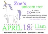 Zoe’s Unicorn Trot is a 5K Walk/Run that benefits the Lucky Fin Project and raises awareness for limb differences. Since 2019, more than 1000 participants have helped us raise over $52,000 for the Lucky Fin Project, a non-profit organization that supports individuals with limb differences. Our Unicorn Trot began with 3 kids (unicorns) with Lucky Fins (what we call their limb differences - ya know, like Nemo!) and has now grown to over 13! We hope to continue to raise awareness and grow our Lucky Fin family.